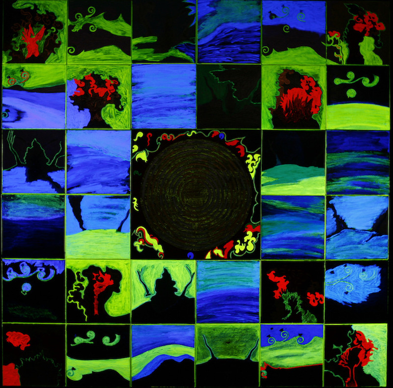 L.C.: «Probabilmente fu nel 1974, quando la Galleria Fumagalli di Bergamo, nella persona del suo fondatore Alberto Fumagalli, mi rescisse il contratto perché non ero d’accordo a mantenere per sempre uno stile riconoscibile nell’optical geometrico. Certamente persi una grande occasione sul piano del mercato, ma non ero pronta e disposta ad un’operazione di stile. Il “Viaggio Alchemico” è un incessante labirinto in cui ti perdi e ti ritrovi e stranamente adesso che ho fatto l’intero percorso e permesso a parti vulcaniche di me di venire alla luce, sono di nuovo interessata alle mie geometrie mentalmente lucide degli anni ’70 ed ho intenzione di riprendere dei modelli che allora erano monocromi e rifrangenti e aumentarne la complessità rendendoli non solo rifrangenti, ma anche fluorescenti e fosforescenti. Cosa che ho iniziato a fare nel 1995 come chiara evoluzione proprio delle rifrangenze degli anni ’70 e dell’uso di foglia d’oro, d’argento e di rame. Come dice Cristina Muccioli di me: voglio portare il Cielo sulla Terra per illuminare il cammino».