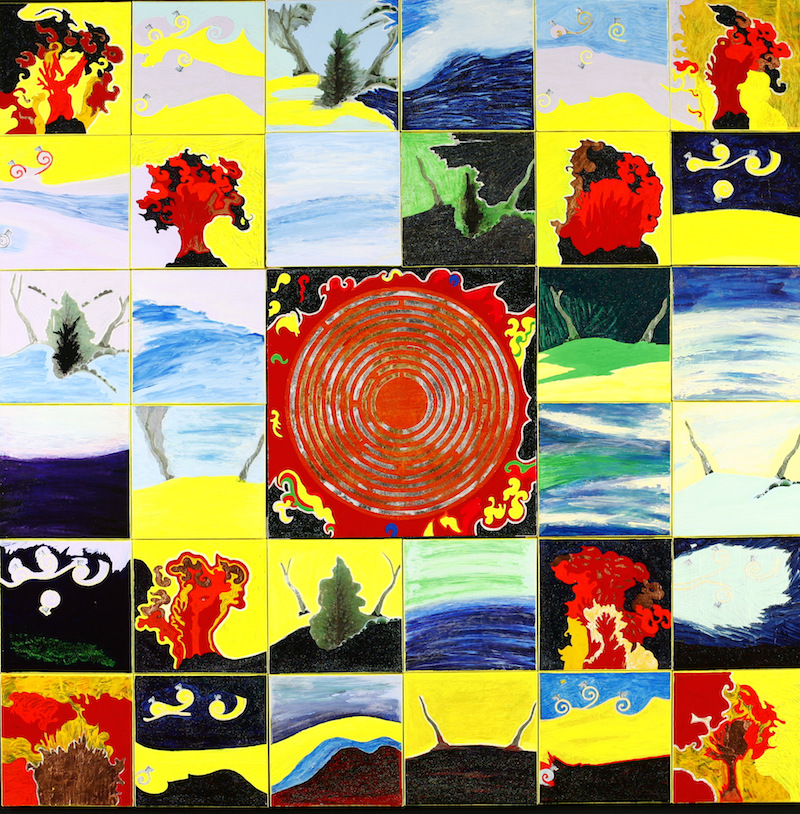 L.C.: Sì, lo studio della Cabala si ripercosse nella mia pittura, composi La Stella Polare e l’Albero della Vita, presentato la prima volta alla bella mostra: “Misure Celesti” a cura di Viola Lilith Russo per D’ARS alla ex-chiesa di San Francesco a Como. A questa mostra parteciparono molti artisti di livello internazionale tra cui Tobia Ravà, Héléne Foata, Anna Finetti, Marco Brianza ed altri. Poi realizzai i grandi quadri della Mostra La Musica delle Sfere, presentata dalla Bossaglia alle Segrete di Bocca. Questi quadri sono ispirati e dedicati agli Arcangeli della Cabala con la chiara intenzione di creare, entrando in uno spazio di comunione con le forze spirituali attivate dagli Arcangeli. Studio più che altro da sola, ma ho anche fatto esperienze di gruppo: un gruppo di calligrafia ebraica di dieci giorni nei Pirenei, alcune lezioni con Nadar Crivelli».