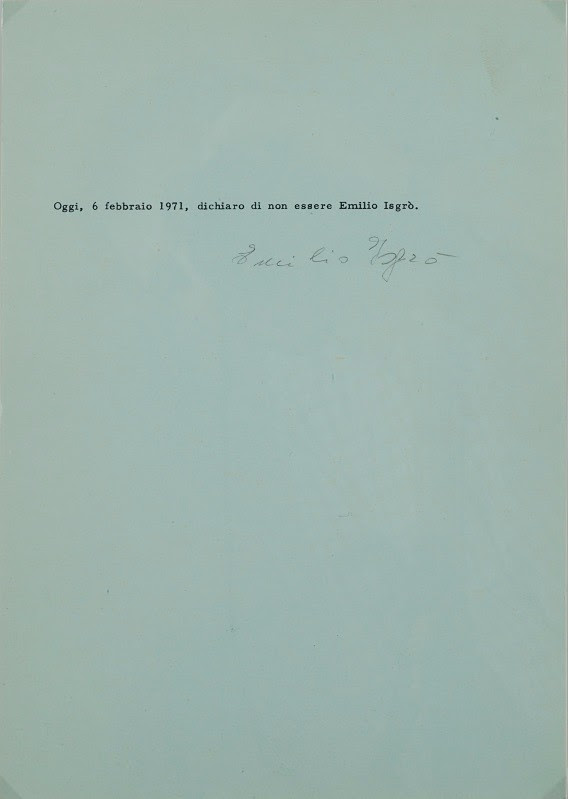 Emilio Isgrò è quindi presente in catalogo con una selezione di opere che sviluppano quel “valore dell’assenza” onnipresente nella sua poetica, a partire dalle cancellature. Esemplare di questa riflessione sull’uso del linguaggio e sul problema dell’identità e della sua negazione è il ciclo di opere Dichiaro di non essere Emilio Isgrò, del 1971 (lotto 144, stima: 35-45.000 euro). Realizzato in sette varianti diverse per colore e disposizione delle testimonianze, la variante II è stata acquisita dagli Uffizi di Firenze nel 2014 ed è esposta nella galleria degli autoritratti.