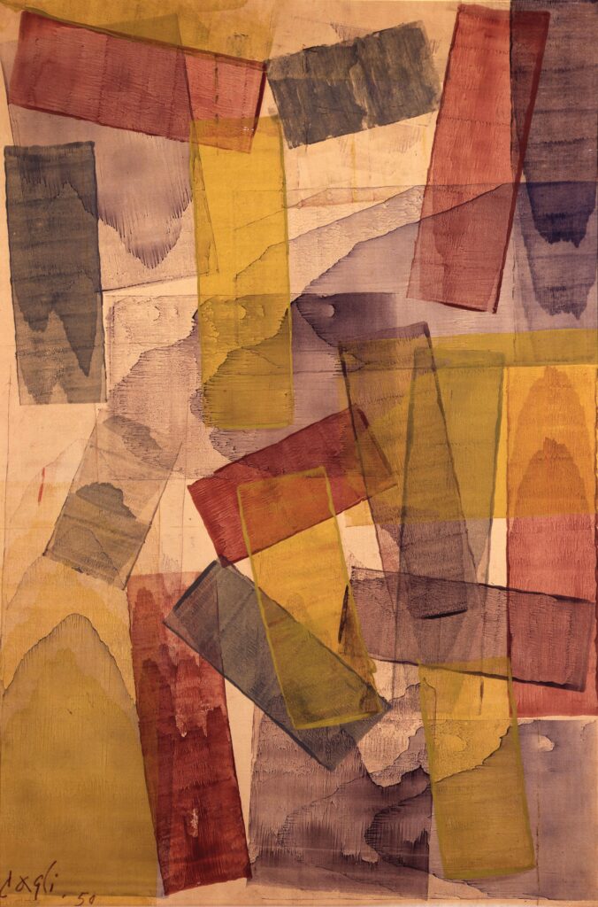 Nel percorso di Cagli, soprattutto nel periodo americano, il segno si emancipa dalla funzione narrativa per diventare strumento analitico, capace di interrogare lo spazio e la percezione. Le opere in mostra – dai dipinti degli anni Cinquanta alle celebri Carte fino alle sculture – restituiscono questa tensione verso una dimensione ulteriore, in cui materia e immagine tendono a coincidere.