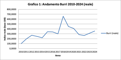 Andamento Burri 2010-2024 (reale)