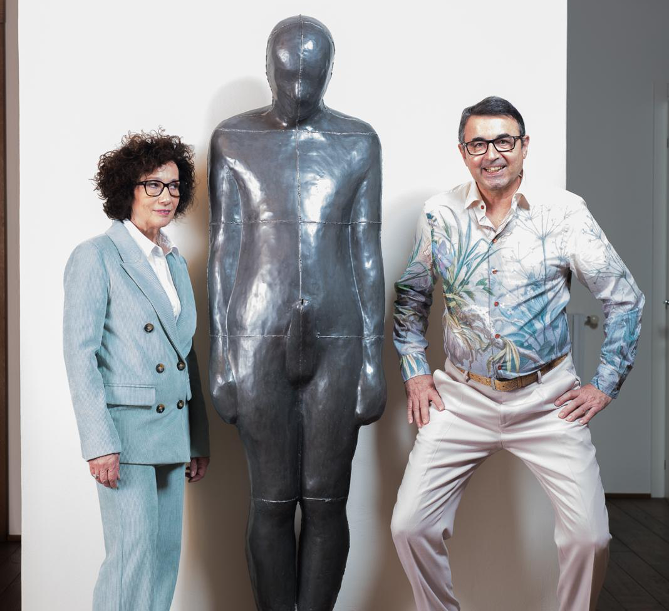 A novembre è stata inaugurata la mostra FRAGILITY – The dance of Life and Death, curata da Domenico de Chirico con Rischa Paterlini, il cui finissage è previsto il 31 luglio mentre per chi vuole la prossima apertura sarà l’11 aprile. Tutte le informazioni si trovano nel loro sito e una volta che si inizia la navigazione è possibile avere un’anteprima dell’intera collezione. Mi è capitato rare volte di poter studiare le opere di un collezionista così ben catalogate con le foto, l’anno di produzione, le dimensioni e la biografia di ciascun artista. La prima opera della collezione è stata “Viaggio a Tunisi” di Piero Pizzi Cannella, arrivata nel 1989, mentre l’ultima è una scultura del giovane Federico Cantale. Laura e Luigi Giordano collezionano anche fotografia e tra le varie opere ho rivisto due scatti di Gabriele Basilico a Beirut che sembrano un dejà vu, con i palazzi bombardati e le strade piene di rovine. Quando ho chiesto a Luigi quale potrebbe essere il filo rosso che collega le opere in collezione mi ha confidato due parole: Eros e Thanatos. Ho ripensato ai lavori di Herman Nitsch, allo Stabat Mater di Mimmo Paladino, al teschio in bronzo di Kiki Smith, all’opera di Giulia Cenci e poi ai profili nudi di Zehra Dogan, alle figure di Herman Albert, alla foto di Vanessa Beecroft, il ricamo di Maurizio Anzeri e tutto si teneva. Ma c’è qualcos’altro che lega le opere alla coppia di collezionisti, tocca a voi leggere tra le righe delle risposte e sfogliando la loro collezione online o dal vivo (gli indirizzi li trovate a fine intervista!).