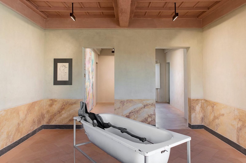 L|LG: Il Diminutivo di Spazio per Arte è SPA e il restauro di Palazzo Bellini, realizzato sotto la supervisione della Soprintendenza, è durato circa 3 Anni. La gente del paese diceva “Giordano apre una SPA, ci voleva proprio una SPA ad Oleggio”. Ad un certo punto mi sono detto “e adesso cosa rispondo alla cittadinanza?”, fino a quando mi è venuta l’idea di commissionare un lavoro site specific a Giulia Cenci che consisteva in una vasca da bagno con all’interno una figura metà uomo e metà lupo, che per me rappresenta l’incontro che ci deve essere tra l’humanitas e le nuove tecnologie.