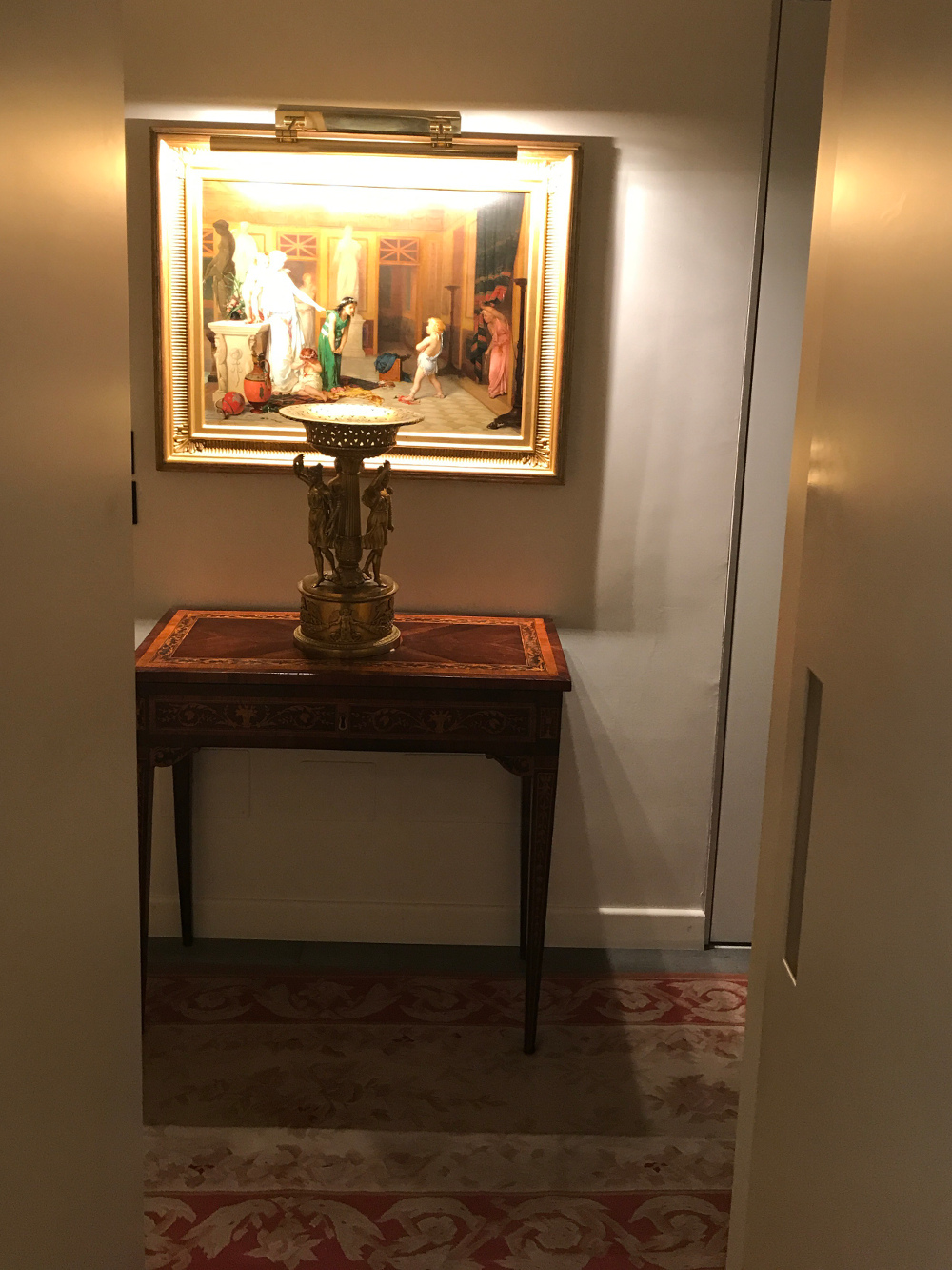 Dai dipinti del XIX secolo sono arrivato all’arte contemporanea ed ai giovani artisti emergenti. Ogni pezzo è parte di un tutto in quanto ogni pezzo conserva un fascino intatto. Ogni giorno ho la fortuna di passare davanti a un dipinto di J.W.Godward o di Anatolio Scifoni, piuttosto che a un centrotavola in bronzo dorato di Luigi Manfredini, e poi osservare uno pneumatico intagliato di Wim Delvoye o un dipinto di Lisa Yuskavage».