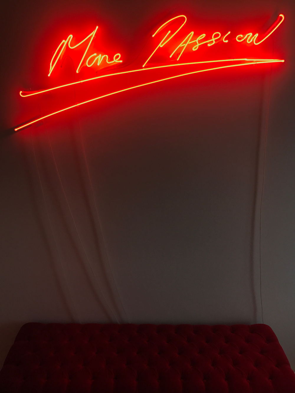 G.C.: «Sono legato a diverse opere. Ne cito solo due. Una è una grande tela di Richard Anuszkiewicz del 1966, penso il suo capolavoro, che comprai passando parte di una notte al telefono con una galleria di New York, la Wigmore Gallery, e che prossimamente verrà esposto in grandi mostre sulla Op Art. Un altro è un neon di Tracey Emin: “More Passion”. Opera eseguita in 3 pezzi, di cui ho scoperto che uno è stata donato dalla stessa artista a David Cameron ed installato al numero 10 di Downing Street».