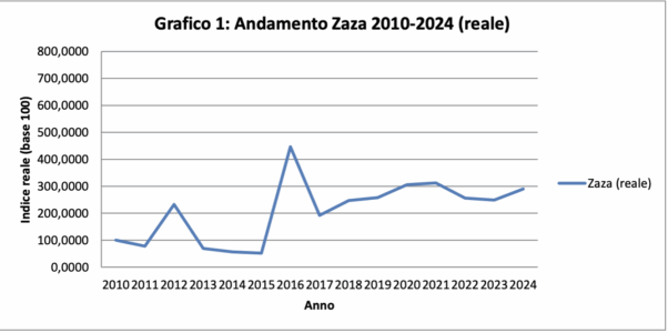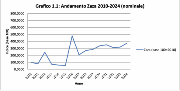 Di seguito anche l’andamento Zaza 2010-2024 “nominale”: