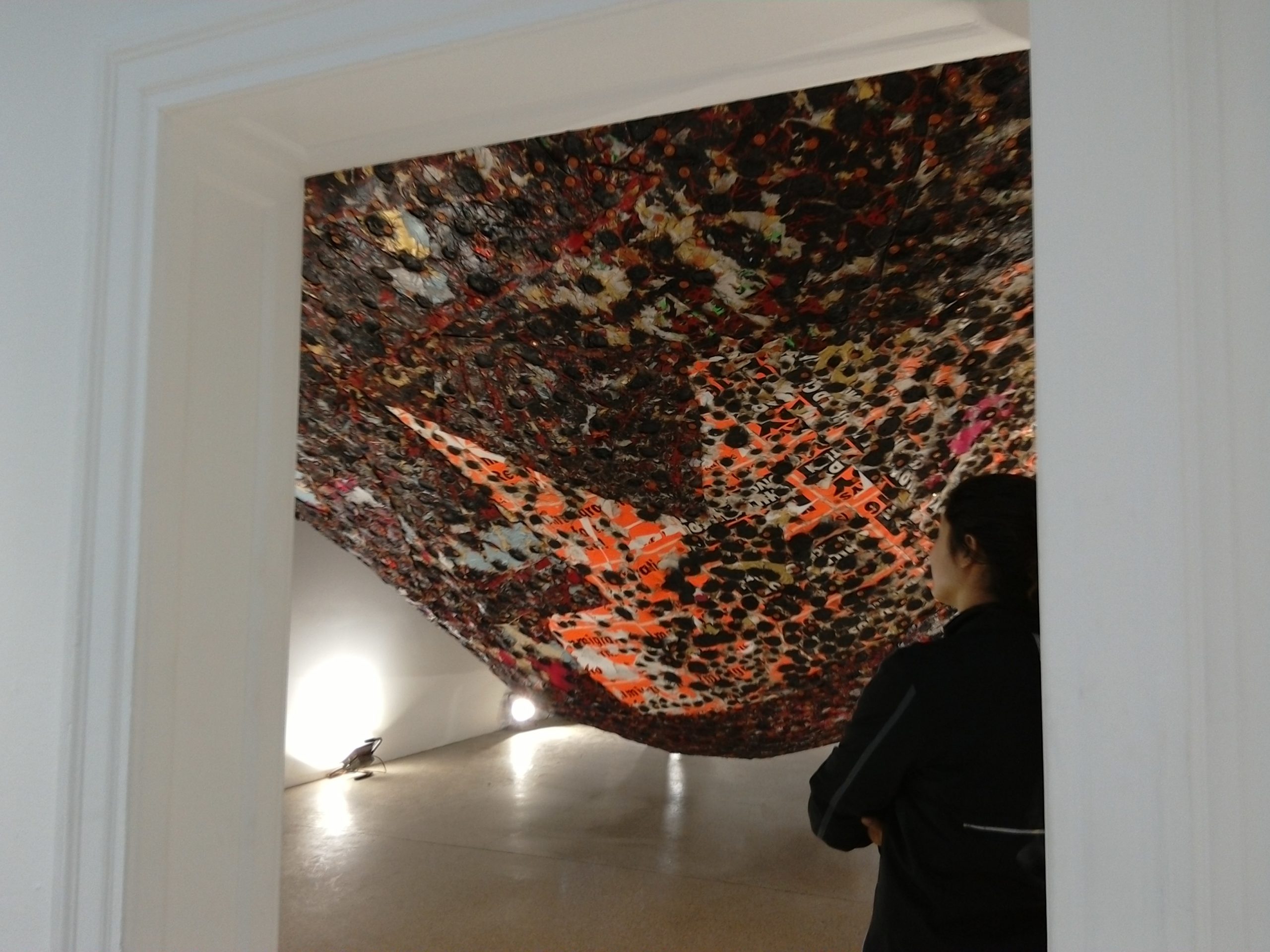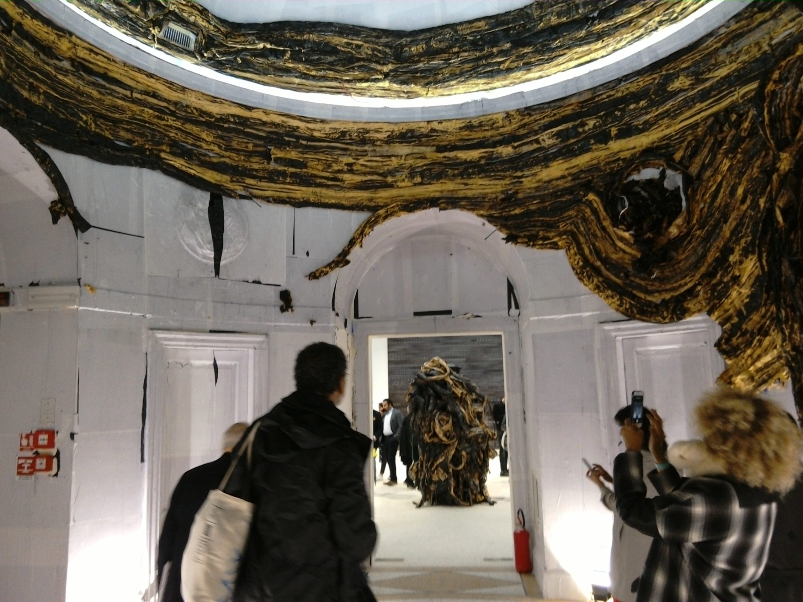 Dopo quelli dell’Italia e della Germania, il padiglione statunitense è, con molta probabilità, uno dei più belli di questa Biennale. Protagonista qui è Mark Bradford con il suo progetto Tomorrow is another day. Una installazione che attarversa i vari ambienti dell’edificio, seguendo una narrazione che rispecchia sia il suo percorso di artista che quello degli Stati Uniti. E non a caso, l’ingresso è dalla porta di servizio, che ci immette in una prima stanza dove un grande intervento ambientale ci costringe a camminare lungo le pareti, sul perimentro, alludendo al crollo del baricentro sociale che caratterizza la nostra epoca, dove sempre più persone si trovano costrette ai margini. Si apre così la seconda sala, in cui tutto si fa ovattato, liquido per poi trasportarci tra quelle che sembrano le rovine di antichi ruderi. Fino ad arrivare alle grandi astrazioni materiche della quarta stanza in cui sembrano riecheggiare le domande fondamentali dell’umanità e che apre a quel domani che, come recita il titolo, è un altro giorno. E Melvin si allontana, così, nelle scene di Niagara, video del 2005 che chiude il percorso espositivo. Un finale che riaccende la luce sull’impegno sociale dell’artista americano che sottolinea, come scrive Zadie Smith nel catalogo, che tutte le vite nere contanto, incluse quelle delle donne nere e degli omosessuali neri, ponendo l’attenzione sul popolo degli emarginati e invitando a resistere, a riflettere, a reagire.