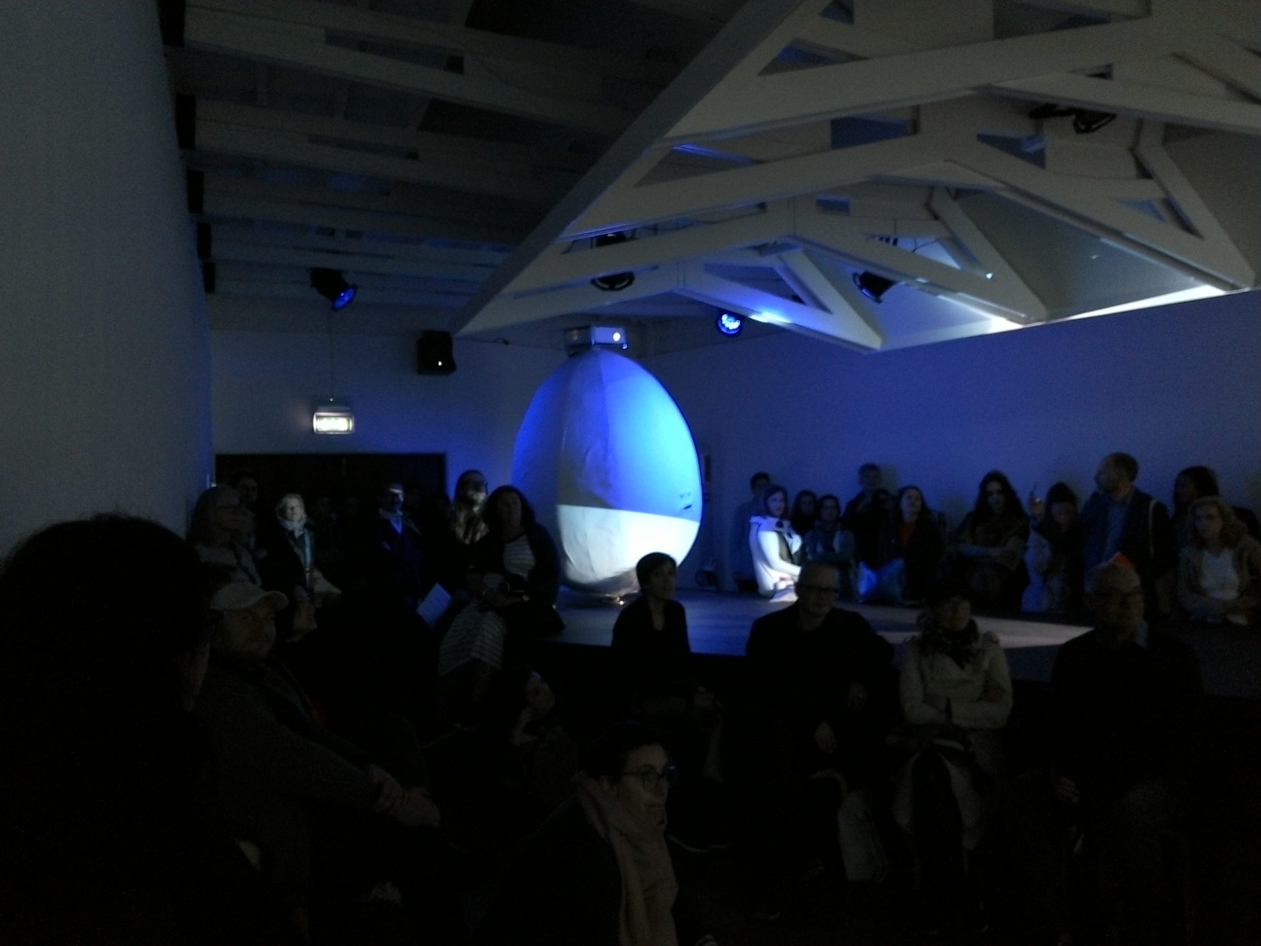 Lasciato il padiglione di Singapore, si scendono le scale per raggiungere il piano terra della Sala d’Arme dell’Arsenale. Qui si trova il Padiglione del Messico dove l’arista Carol Amorales presenta l’opera Life in the Folds con la quale venieamo introdotti in un mondo in cui stampa, scultura, musica e cinema si fondono per dar vita e forma ad un nuovo modo di guardare alla realtà che materializza il pensiero critico. Una riflessione sul linguaggio, la codificazione e il ruolo stesso dell’arte nella nostra società.