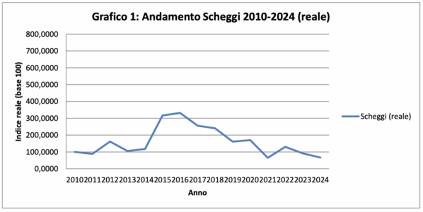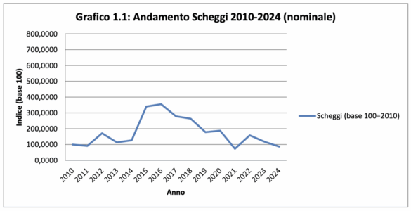 Andamento Scheggi 2010–2024: una curva composta da tre momenti distinti