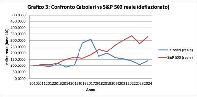 Il FTSE MIB fatica a mantenere il potere d’acquisto, mentre Calzolari, pur con oscillazioni marcate, chiude il periodo su un livello superiore. Questo significa che, nel lungo periodo, il mercato di Calzolari ha protetto il capitale meglio della Borsa italiana.