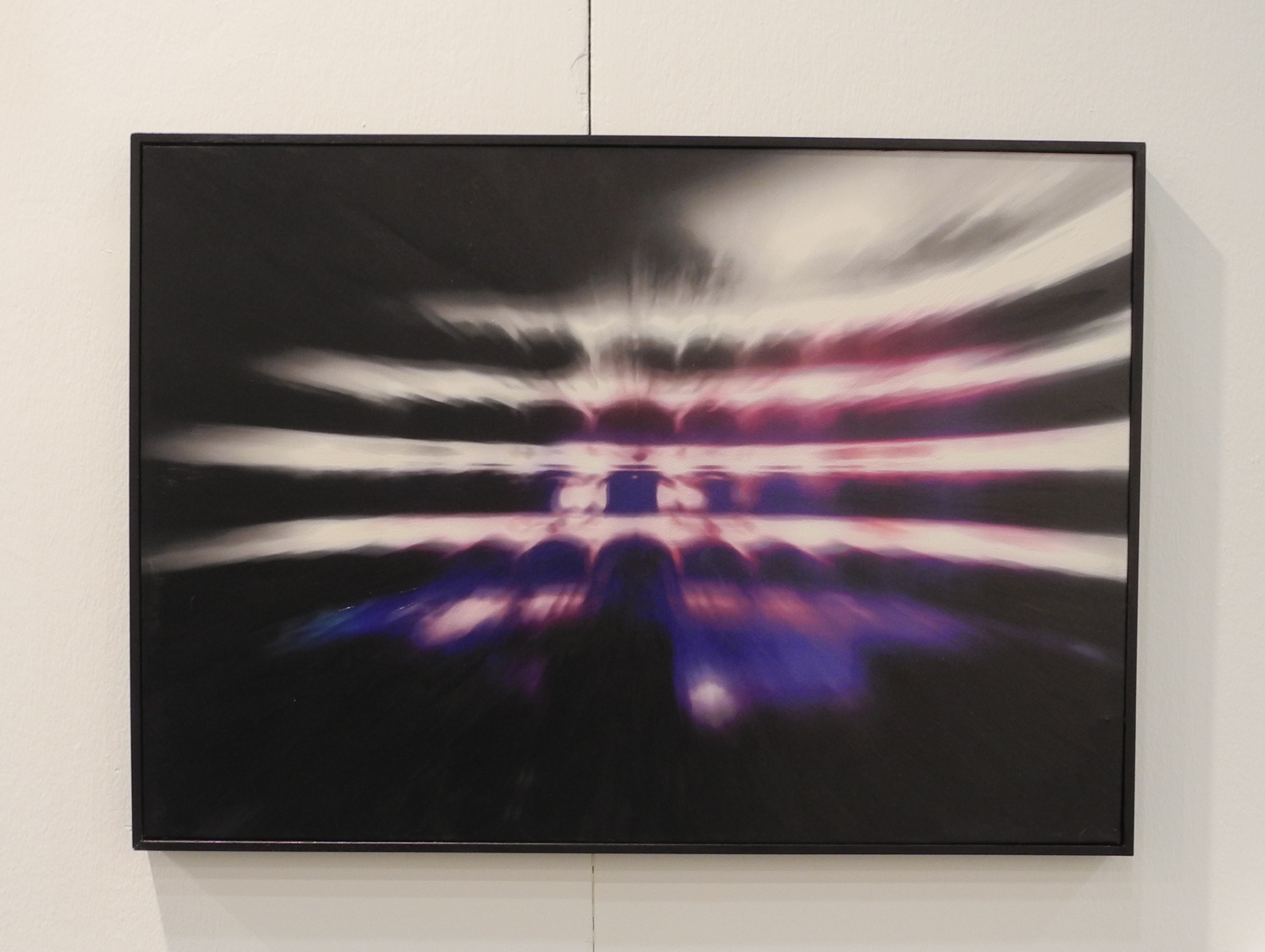 Passando a gallerie meno “famose”, mi piace segnalare Soave Arte di Alessandria (stand 16) con una bella scelta di opere di astrattisti italiani della prima metà del Novecento e bei lavori di Nouveaux Réalistes; Roberta Lietti di Como (60) con notevoli disegni di piccolo formato di Mario Radice e Carla Badiali; Eidos di Asti (18) ancora con Nouveaux Réalistes e due belle opere di Gianfranco Baruchello e Jiří Kolář, più una particolarissima opera interattiva di Aidan (n. 1979): Tra le righe (2016), un quadro che “innesca” un’animazione elettronica se osservato tramite smartphone; La Piazzetta di Udine (74) che presenta tra l’altro gli interessanti lavori di Bruno Beltramini, giovane direttore della fotografia e videomaker friulano (si tratta di riprese digitali su supporto iPad incorniciato come un quadro, con ipnotiche immagini della natura) e un bell’olio e inchiostro su carta a mano di Mauro Gentile (n. 1974): Atlas.