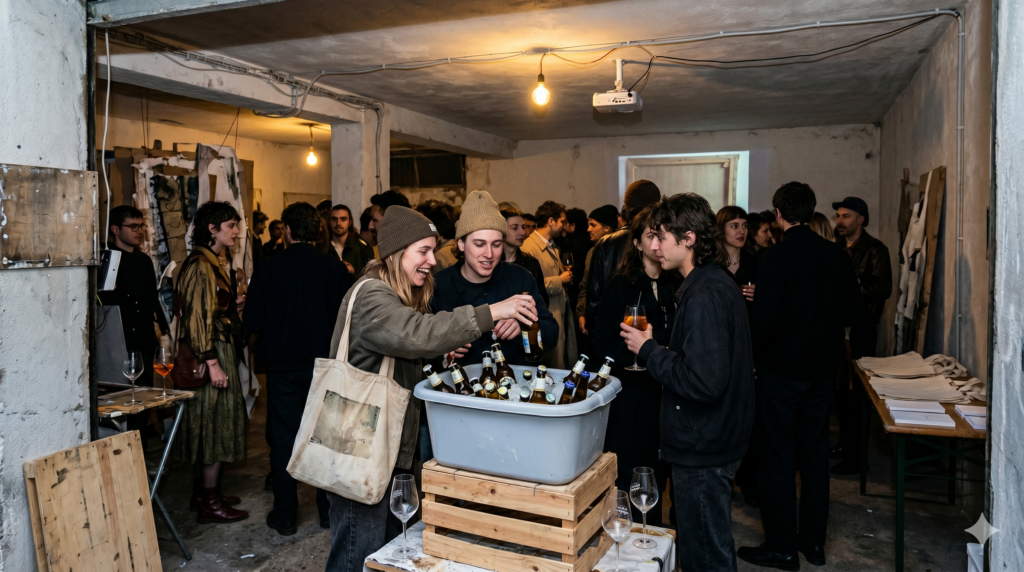 Scrocchiamo qualsiasi cosa: cene, hotel, divani di collezionisti… perché loro vogliono stare con noi, si vogliono mischiare alla nostra figaggine. Dormiamo in cocoon appesi come pipistrelli in ostelli con camerate infinite, rischiando l’accoltellamento, per essere alle aperture degli eventi chiusi alle persone comuni: noi non ci mescoliamo con voi.