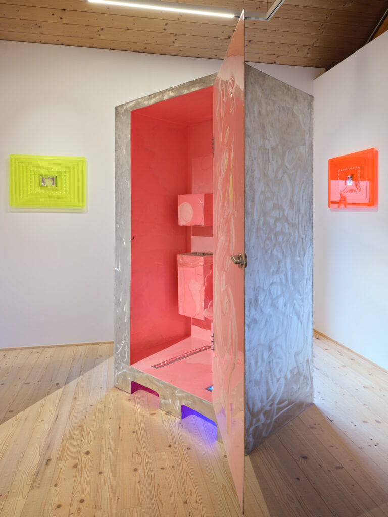 Il percorso espositivo si articola tra opere che giocano sulla duplicazione e sulla trasparenza, come Just-in-time, e installazioni monumentali come la Mobile Sauna, un veicolo bellico svedese riconvertito che incarna la tensione tra protezione e controllo. Al piano interrato, l’atmosfera cambia radicalmente trasformandosi in un ambiente ibrido tra club notturno e area di servizio, dove luce e suono attivano quello che l’artista definisce un cruising logistico. Diciassette serie di lavori reinterpretano oggetti comuni come distributori d’acqua e arredi tecnici, elevandoli a presenze scultoree ambigue che sfidano le funzioni operative standard degli spazi e dei corpi.