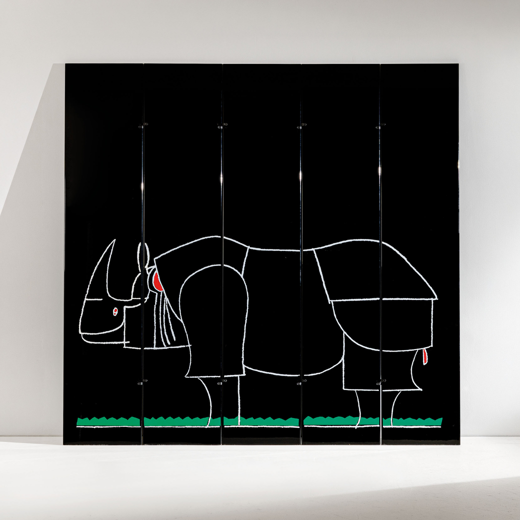 Tra i lotti di apertura brilla per originalità il paravento Rhinocéros di François-Xavier Lalanne e Kazuhide Takahama (lotto 16, stima €20.000–26.000), esempio emblematico di design scultoreo in cui la funzione d’uso e l’immaginazione onirica si fondono in una presenza scenografica di straordinario impatto.